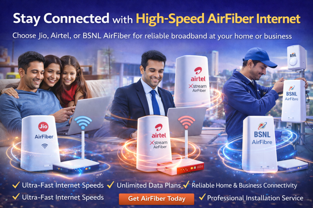 Experience high-speed wireless broadband with Jio AirFiber. We provide quick installation, reliable connectivity, and full support for homes and businesses.